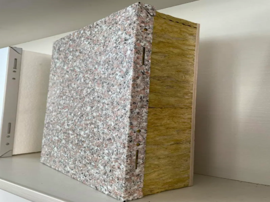 薄陶瓷保溫一體板是以6mm左右的陶瓷薄板與熱固、巖棉等A級防火保溫材料進(jìn)行復(fù)合而成的板材,仿石效果可達(dá)99%,并且能做到天然石材無法擁有的光澤度,是一種裝飾、保溫、防火等多方面都較為優(yōu)異的材料。