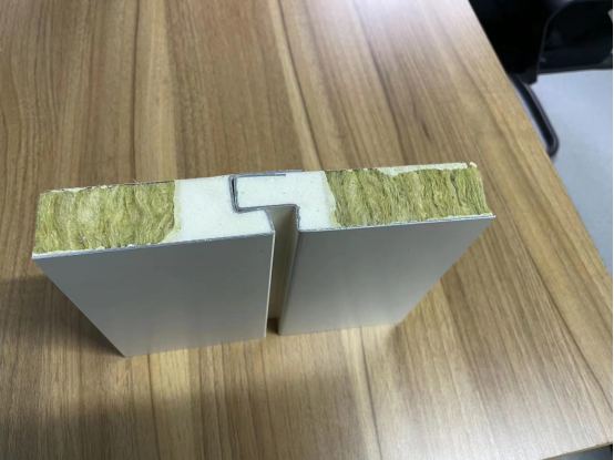 企口型金屬一體板是用兩層金屬板與保溫材料進(jìn)行夾心復(fù)合的材料,再用防火材料進(jìn)行封邊,通過檁條連接固定提高整體鋼度,采用企口工藝制作成凹槽有縫板型,提高了金屬保溫一體板的壽命與安全系數(shù),完全包裹式材料防水性更好。