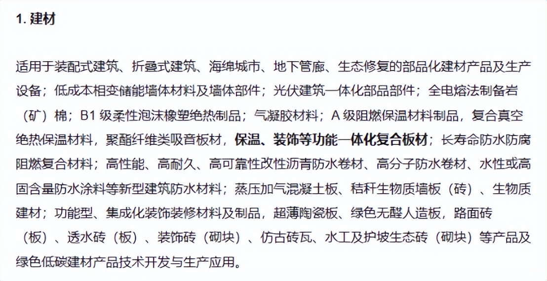 《產(chǎn)業(yè)結(jié)構(gòu)調(diào)整指導(dǎo)目錄(2023年本,征求意見稿)》中,保溫裝飾一體板被列入鼓勵(lì)類建材。