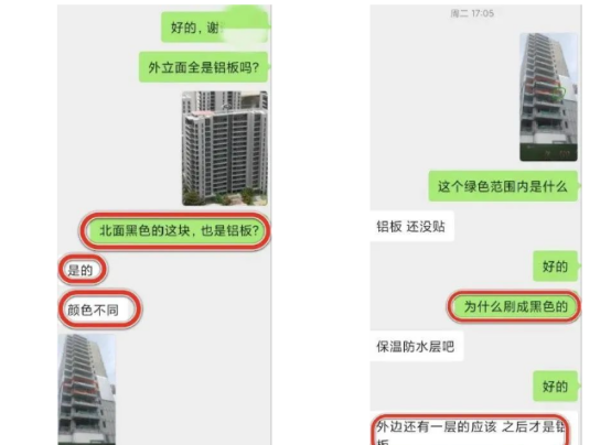 但是在建樓的過程中,似乎不太一樣了。有業(yè)主發(fā)現(xiàn)實際樓盤外飾面與宣傳的并不相符,業(yè)主們聯(lián)系銷售,針對業(yè)主指出問題,銷售依舊說外立面是鋁板+玻璃幕墻。