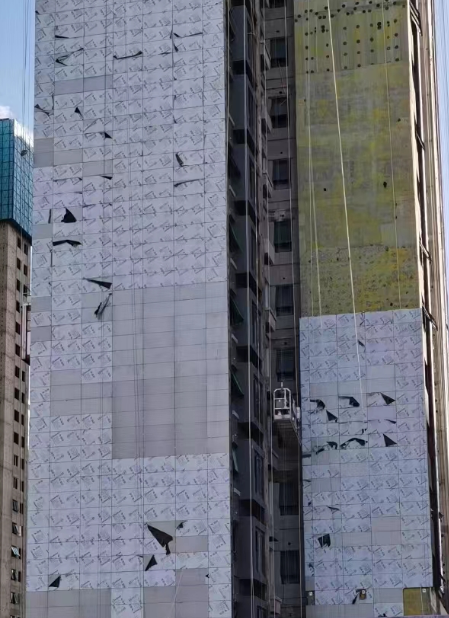 過(guò)去里面保溫層采用有機(jī)材料還好,而現(xiàn)在采用巖棉、勻質(zhì)板等材料一旦受潮,或者基層墻體滲水,一體板硅鈣板面板、底板和保溫材料吸水后經(jīng)過(guò)凍融產(chǎn)生變形、甚至材料粉化,這種問(wèn)題基本難以修復(fù),如果造成板材脫落后果不堪設(shè)想。